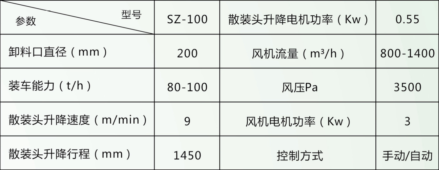 本設備是與卸料器,輸送斜槽,振動料斗等給料設備配套的全自動散料裝車、裝船設備,配有全自動控制系統(tǒng),工作全程處于封閉狀態(tài),有效的防止粉塵外溢。
